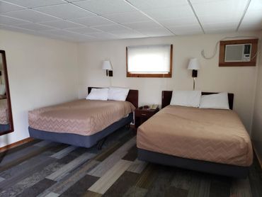 Economy room with 2bedrooms, one with 2 queen beds and one with 2 double beds