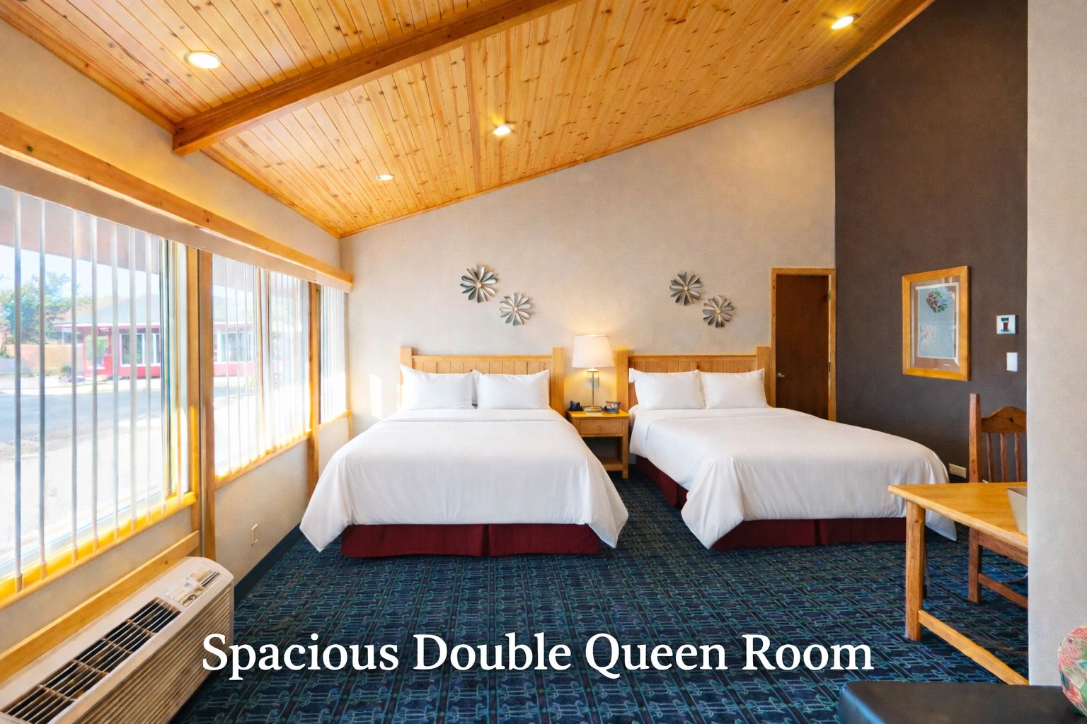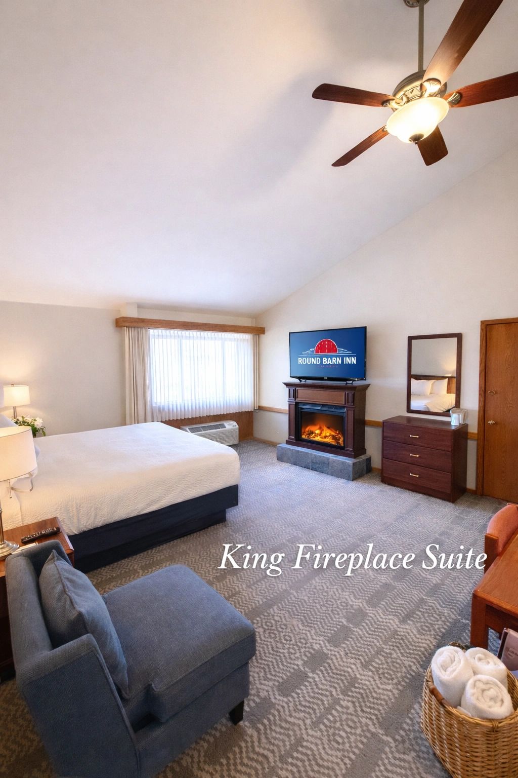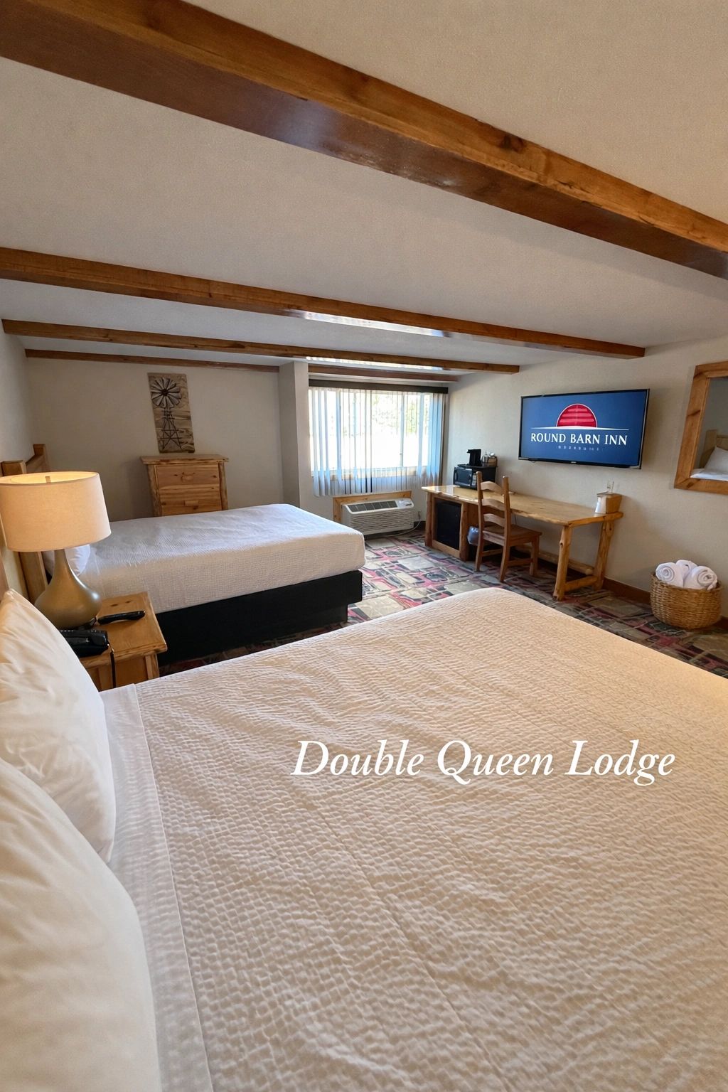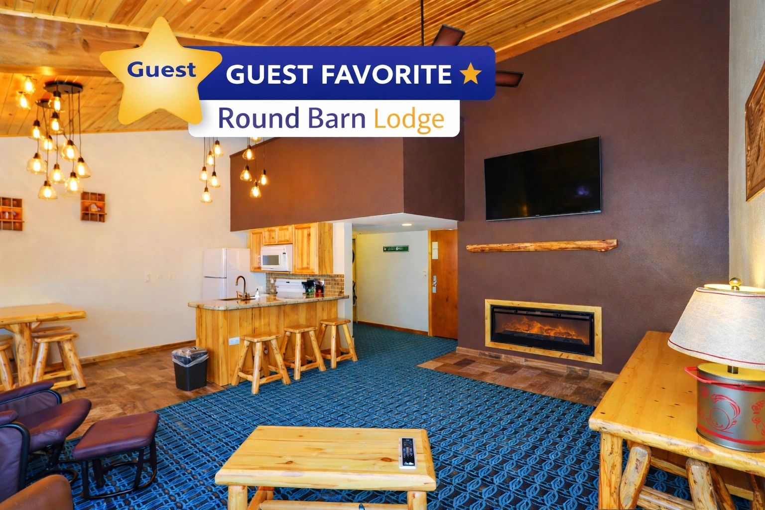 At Round Barn Lodge, our family-owned lodge is known for exceptional service and thoughtful cleanliness. Guests are welcomed by Moe the Moose before settling into our updated, spacious rooms—ranging from double queens to deluxe two-bedroom family suites, with adjoining rooms and cozy fireplace suites available.